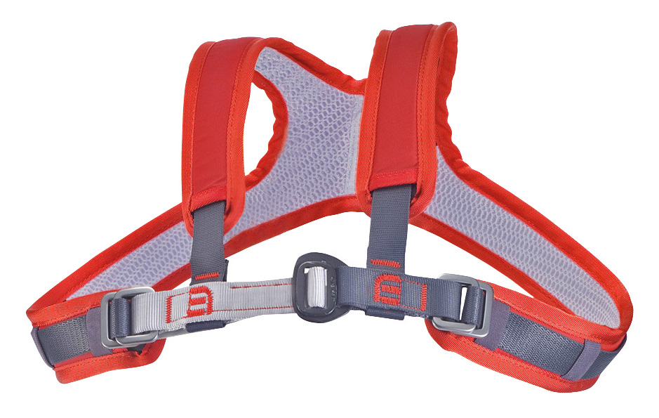 Brustgurt mit “8er-Form”. Bei einer Befestigung im unteren Bereich, dem Air Rescue Evo Sit, weist er auf Brustbeinhöhe eine Befestigung mit Doppelöse auf: eine untere Öse für die Verbindung von Absturzsicherungen oder Materialhaltern, eine obere Öse, um den Haken der Hubschrauberwinde einzuhängen