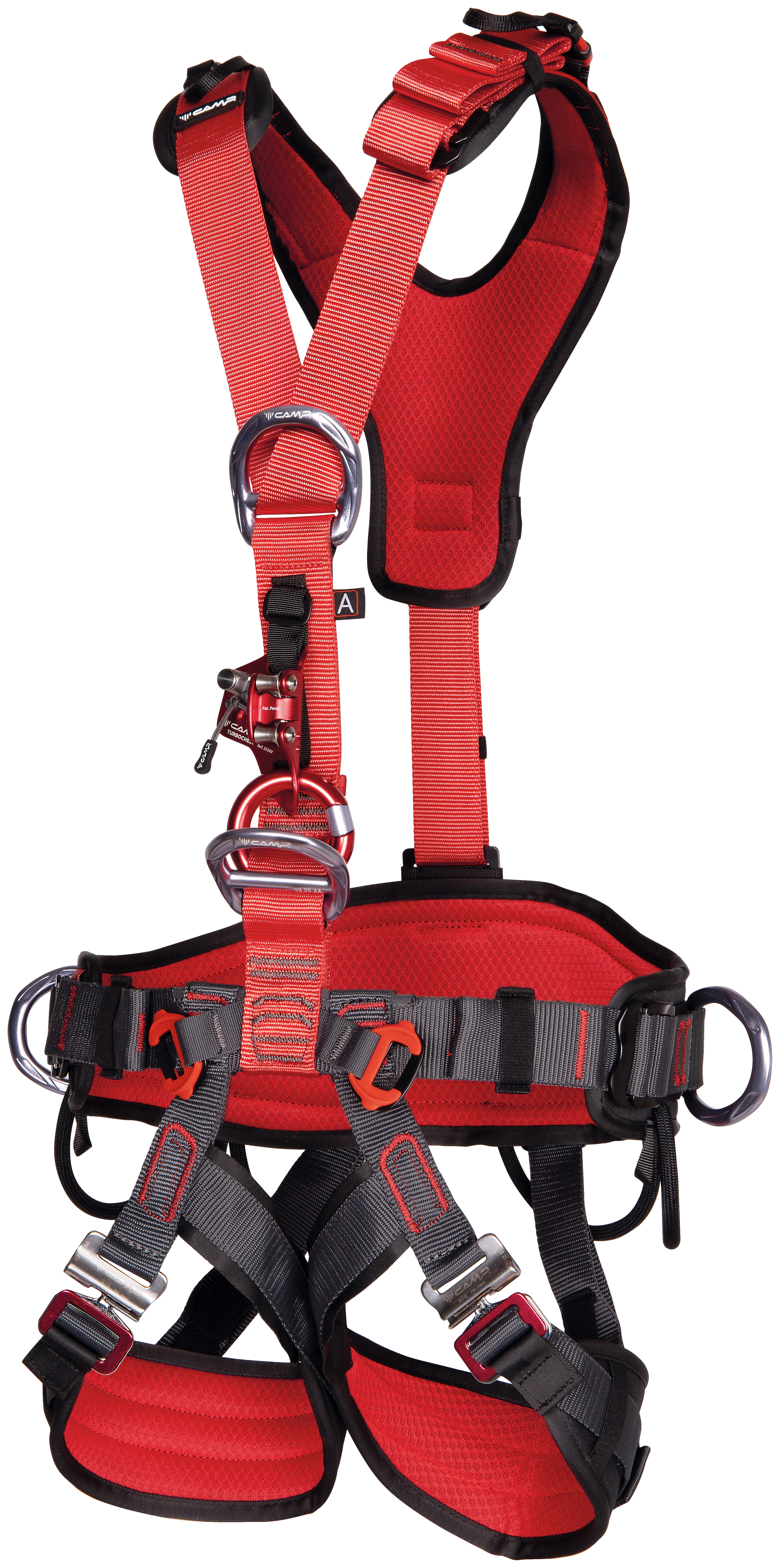 Komplettgurt mit integrierter Bruststeigklemme Turbochest, ideal für komplexe Höhenarbeiten, die nach langen Seilaufstiegsmanövern verlangen. GT Turbo vereint den Komfort der GT-Konstruktion, die infolge unseres Forschungsprogramms “SOSPESI” über das Hängesyndrom erarbeitet wurden, mit der Aufstiegseffizienz des Turbochest, ausgestattet mit Rädchen, um die Seilreibung zu verringern