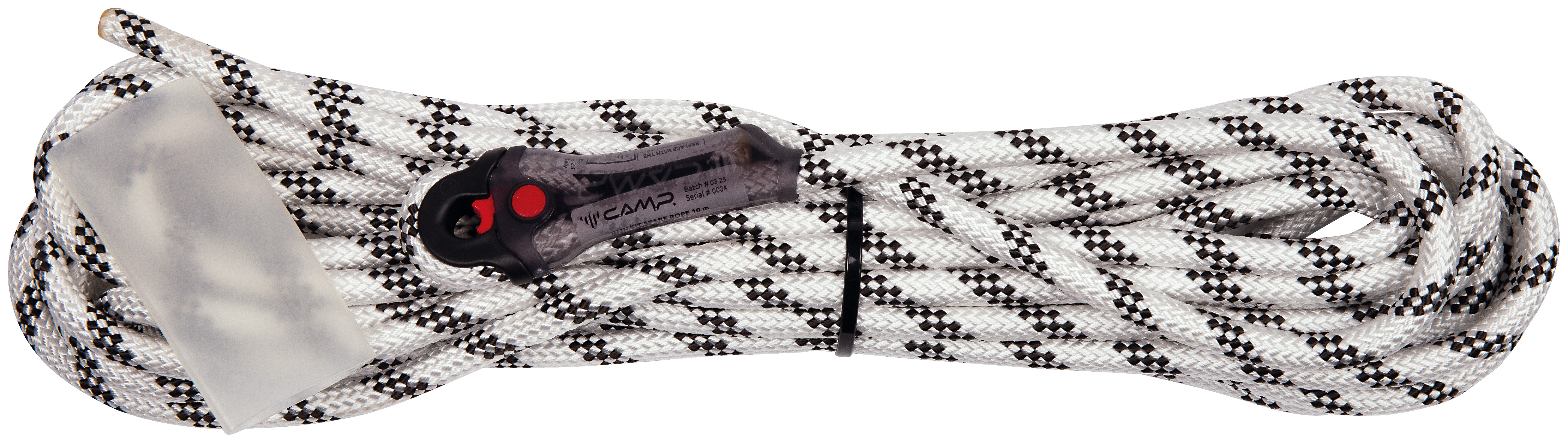 Ersatzseil für den Blin Kit. Beim Seiltausch einfach das alte Seil durchschneiden und das neue Seil in der richtigen Richtung in das Bremsgerät einfügen. Es muss notwendigerweise ein Knoten am unteren Seilende angebracht werden, auf den ein Schrumpfschlauch kommt.